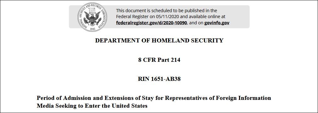 據路透社9日報道,當地時(shí)間8日美國國土安全部在《聯(lián)邦公報》(Federal Register)網(wǎng)站上發(fā)布了一份名為《外國新聞媒體代表進(jìn)入美國的許可和延長(cháng)逗留時(shí)間》的新規定,計劃針對中國媒體記者收緊簽證政策,限制入境停留時(shí)間為90天,但可申請延期。 美國國土安全部在《聯(lián)邦公報》上發(fā)布的文件 《聯(lián)邦公報》,是美國聯(lián)邦政府的政府公報,其內容可概分為美國聯(lián)邦機構的規則,及擬議中的規則與公告。觀(guān)察者網(wǎng)查閱公告內容后發(fā)現,針對中國記者簽證的限制規定計劃將于11日正式發(fā)表,現在仍處于公眾審閱(Public Inspection)階段。 如果生效,中國媒體駐美記者每隔90天就需要申請延期,而如果美國移民局不批準申請,那么中國記者就必須立即離境,但該新規不適用與持香港和澳門(mén)護照的中國記者。 路透社援引一名要求匿名的國土安全部高級官員稱(chēng),新規定將允許該部門(mén)更頻繁其審查中國記者的簽證申請,并可能減少在美中國記者的總人數。他還聲稱(chēng):“這將為(美國的)國家安全提供更大的保護! 近年來(lái),美國政府對中國媒體駐美機構和人員的正常新聞報道活動(dòng)無(wú)端設限,無(wú)理刁難,不斷升級對中國媒體的歧視和政治打壓,特別是2018年12月美方要求有關(guān)中國媒體駐美機構注冊為“外國代理人”,2020年2月將5家中國媒體駐美機構列為“外國使團”,隨即又對上述5家媒體駐美機構采取人數限制措施,變相大量“驅逐”中方媒體記者。 針對美方種種限制中國記者的行為,中國外交部發(fā)言人華春瑩上月1日表示:美國務(wù)院在過(guò)去兩年已經(jīng)無(wú)故拒簽29名中國記者赴美簽證,其中包括9名常駐記者,而且美方在3月2日要求60名中國媒體駐美記者10天內必須離開(kāi)美國。美方這么做的真實(shí)意圖是什么?難道是他們當時(shí)就已經(jīng)預料到美國內疫情會(huì )發(fā)展到今天的地步嗎?他們是不是不想讓世界了解美國內真實(shí)情況呢? |